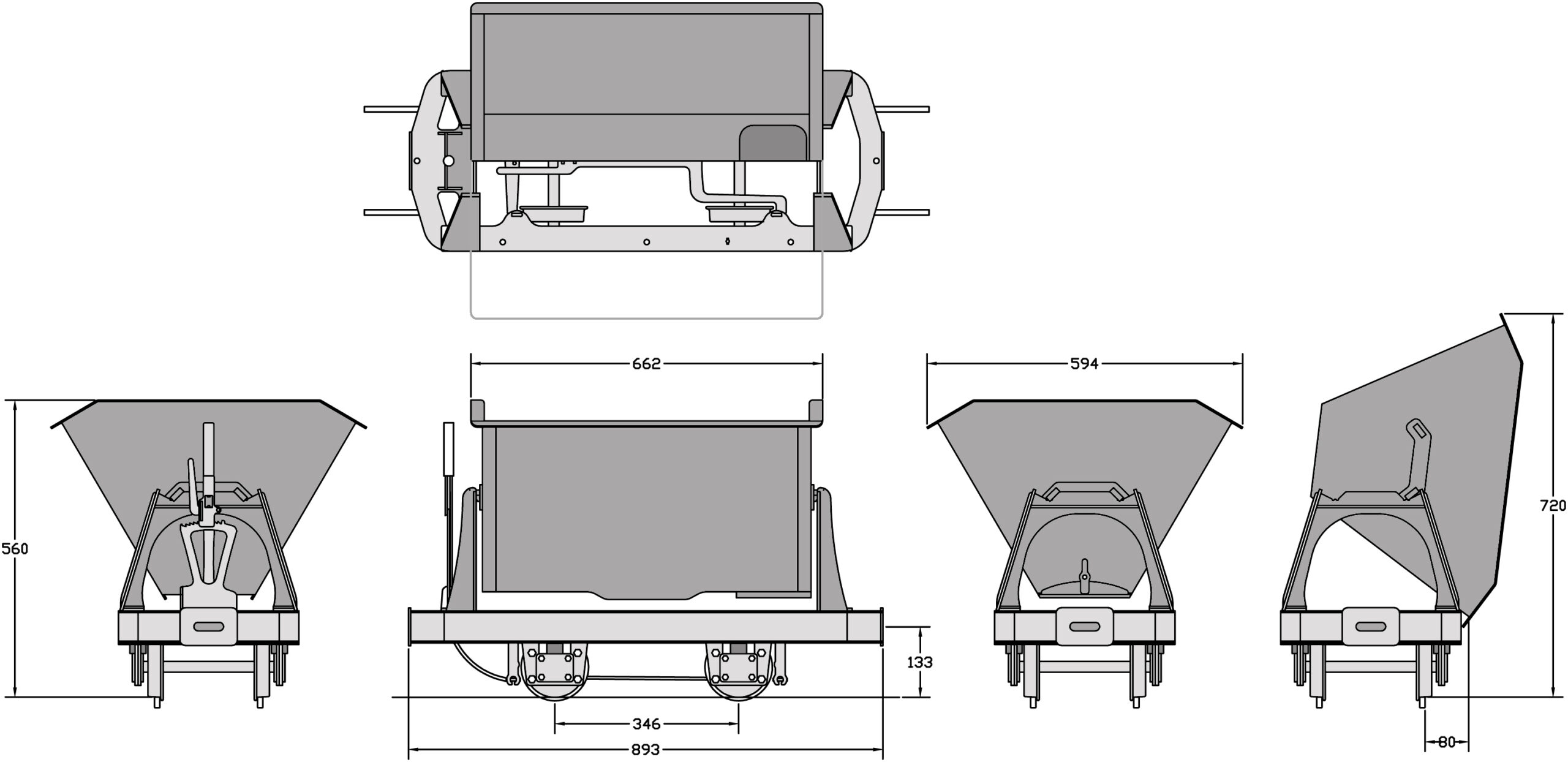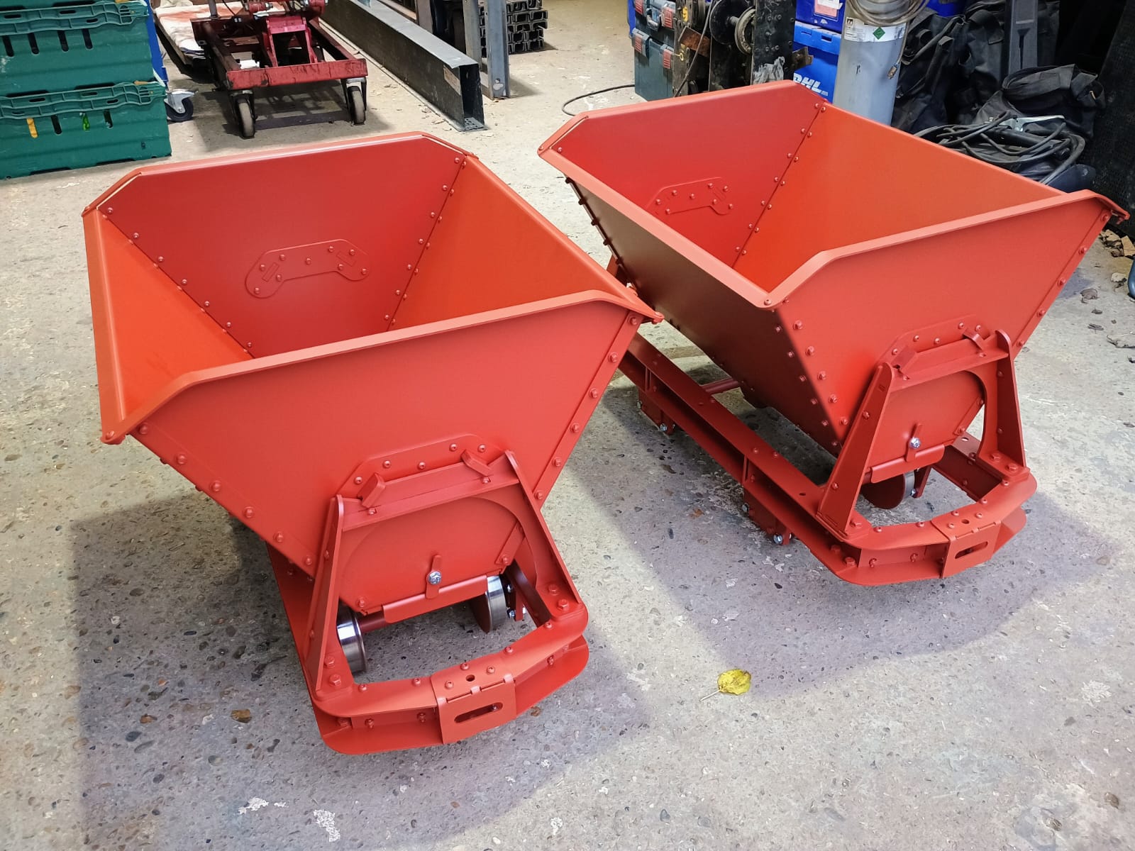 Body folded 3mm steel | Body supports 5mm steel. | Length 893mm | Width 594mm | Bucket capacity 75 litres