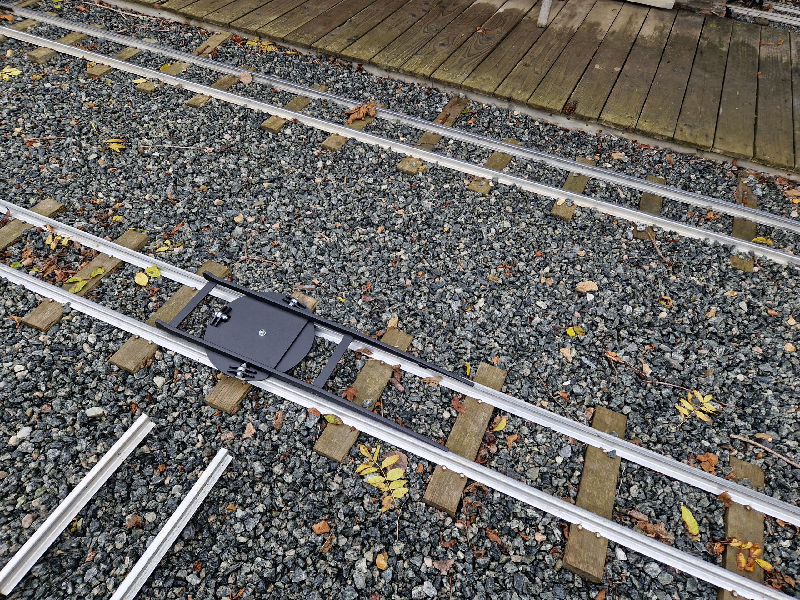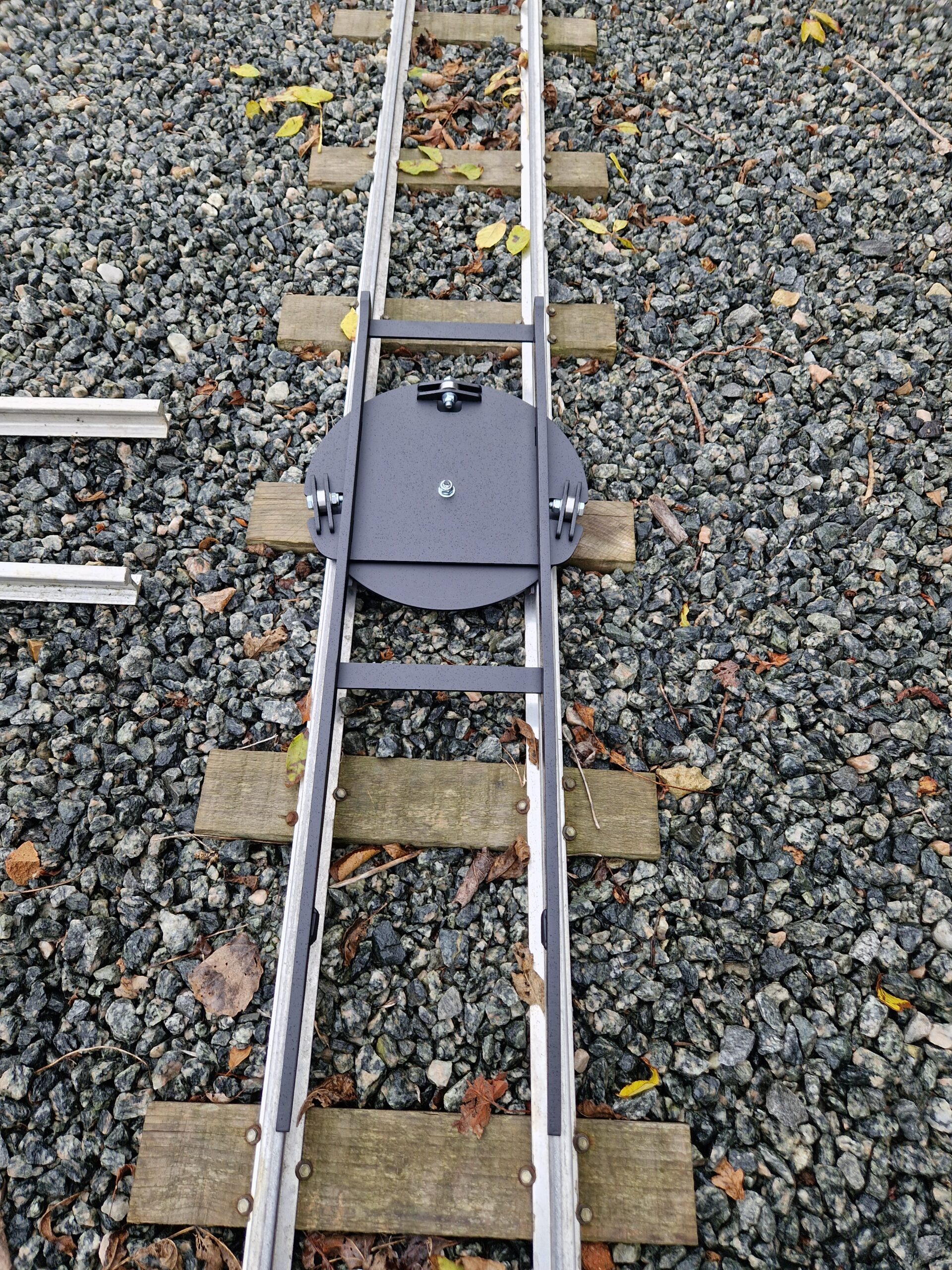 portable turntable 7¼” gauge. Originally designed by Colin Edmondson for the Scamp locomotive, this portable turntable is also great for all short wheel-base vehicles. The turntable is light weight and can be placed almost anywhere to turn locomotives and rolling stock.