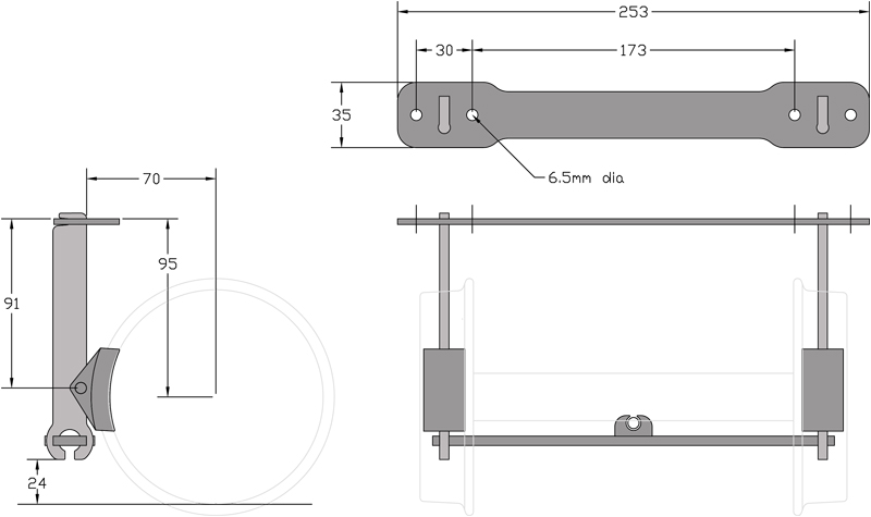 Brake rigging. Designed by Colin Edmondson. This bolt together kit takes PNP railways glass filled nylon narrow gauge brake shoes (not supplied). It is designed to be bolted under a loco or wagon floor, some clearance holes will need to be made in the floor or spacing blocks used. The rigging is cable operated; we offer car style and vertical hand brake levers to suit. The design is well proven as it is the same as we use in the Scamp locomotive.