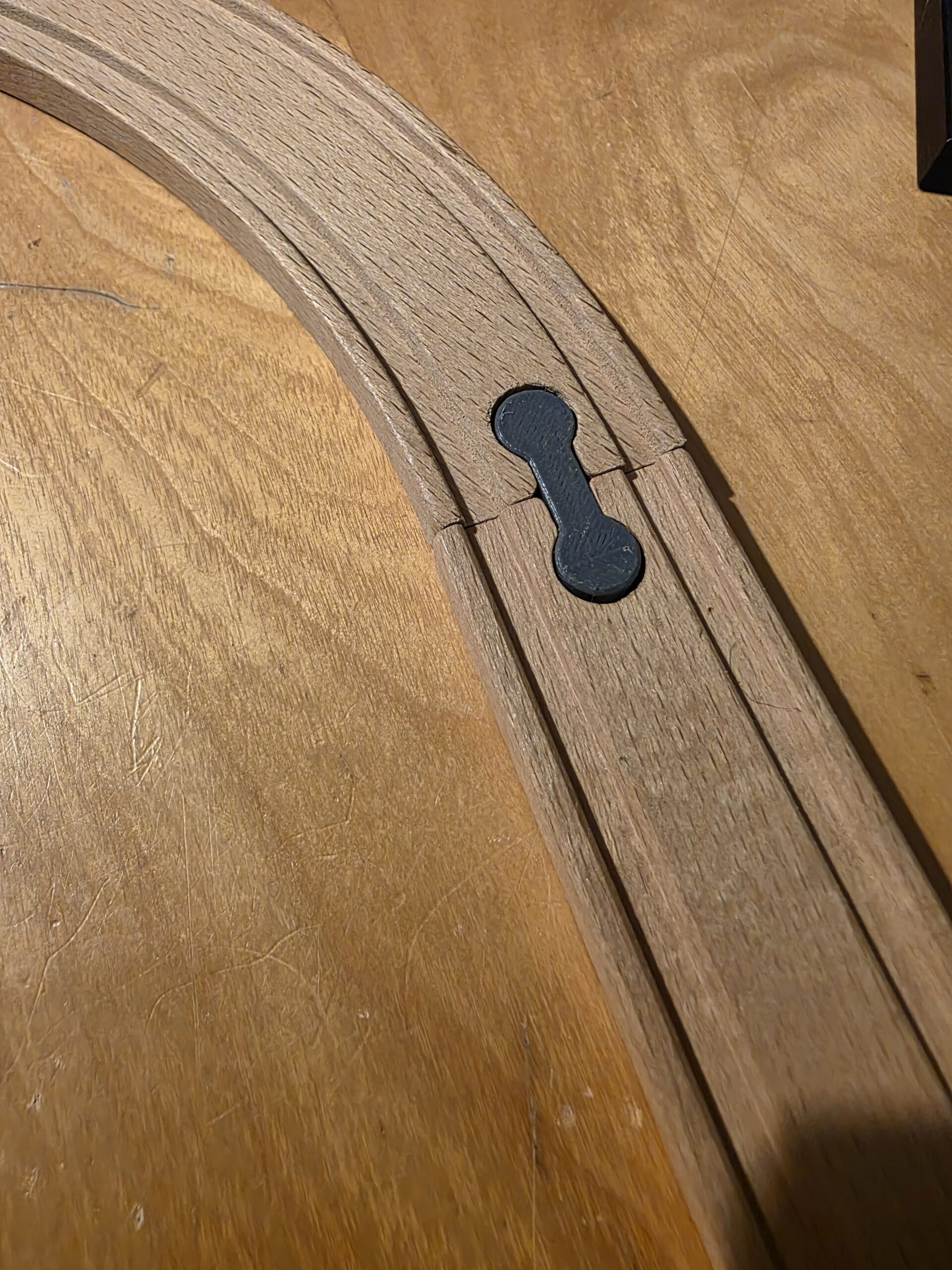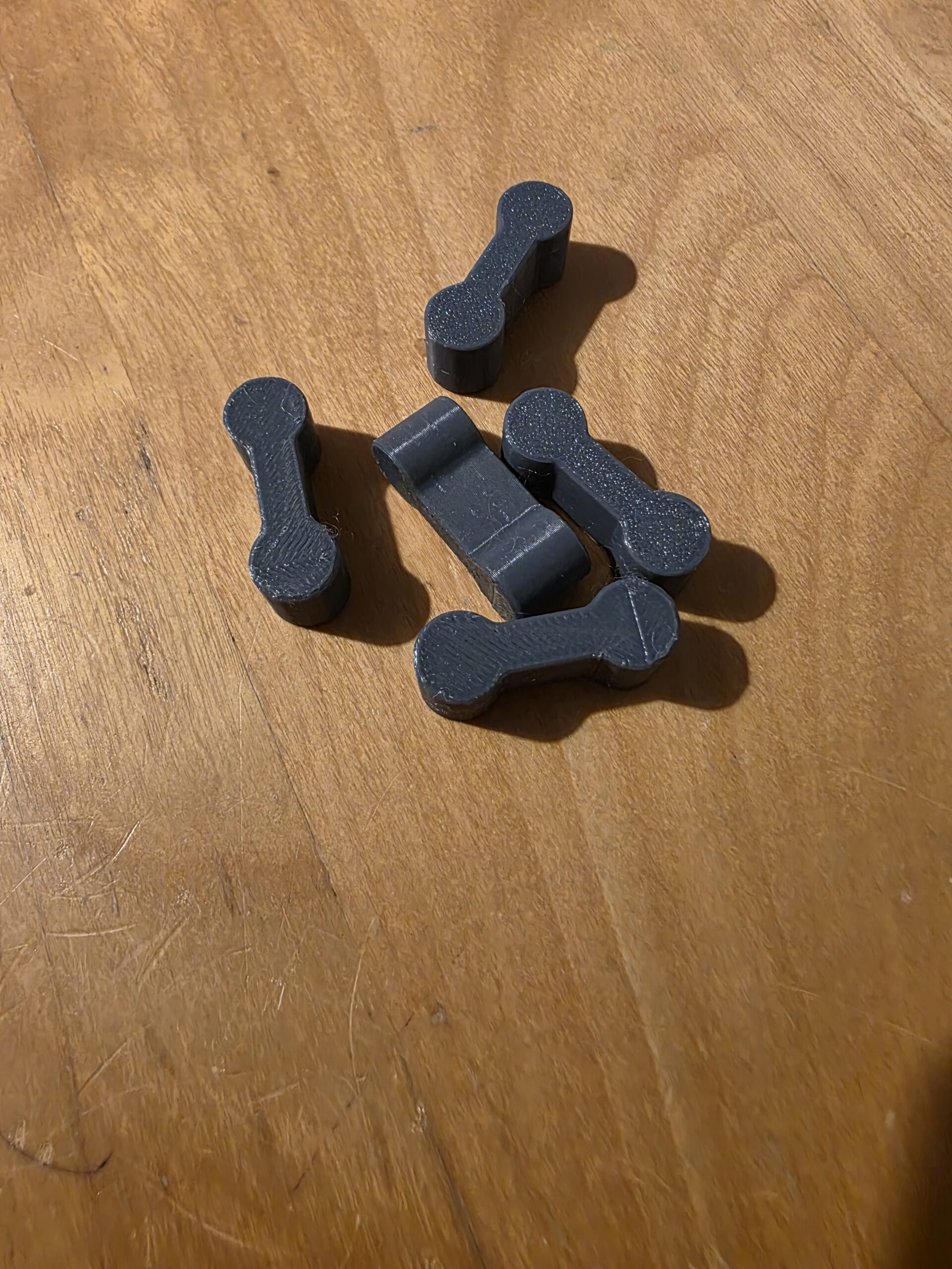 Perfectly sized dog bones to insert into wooden track that doesn’t line up quite perfectly.