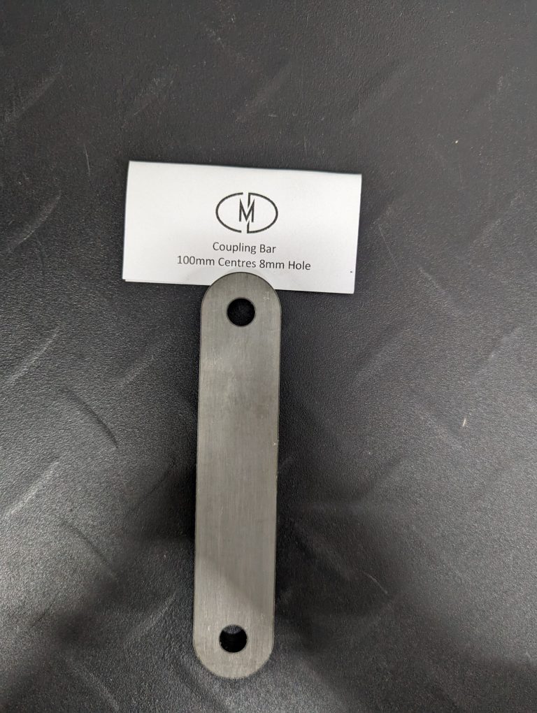 Coupling bar 100mm centres, 8mm pin hole. Laser cut from 6mm steel.