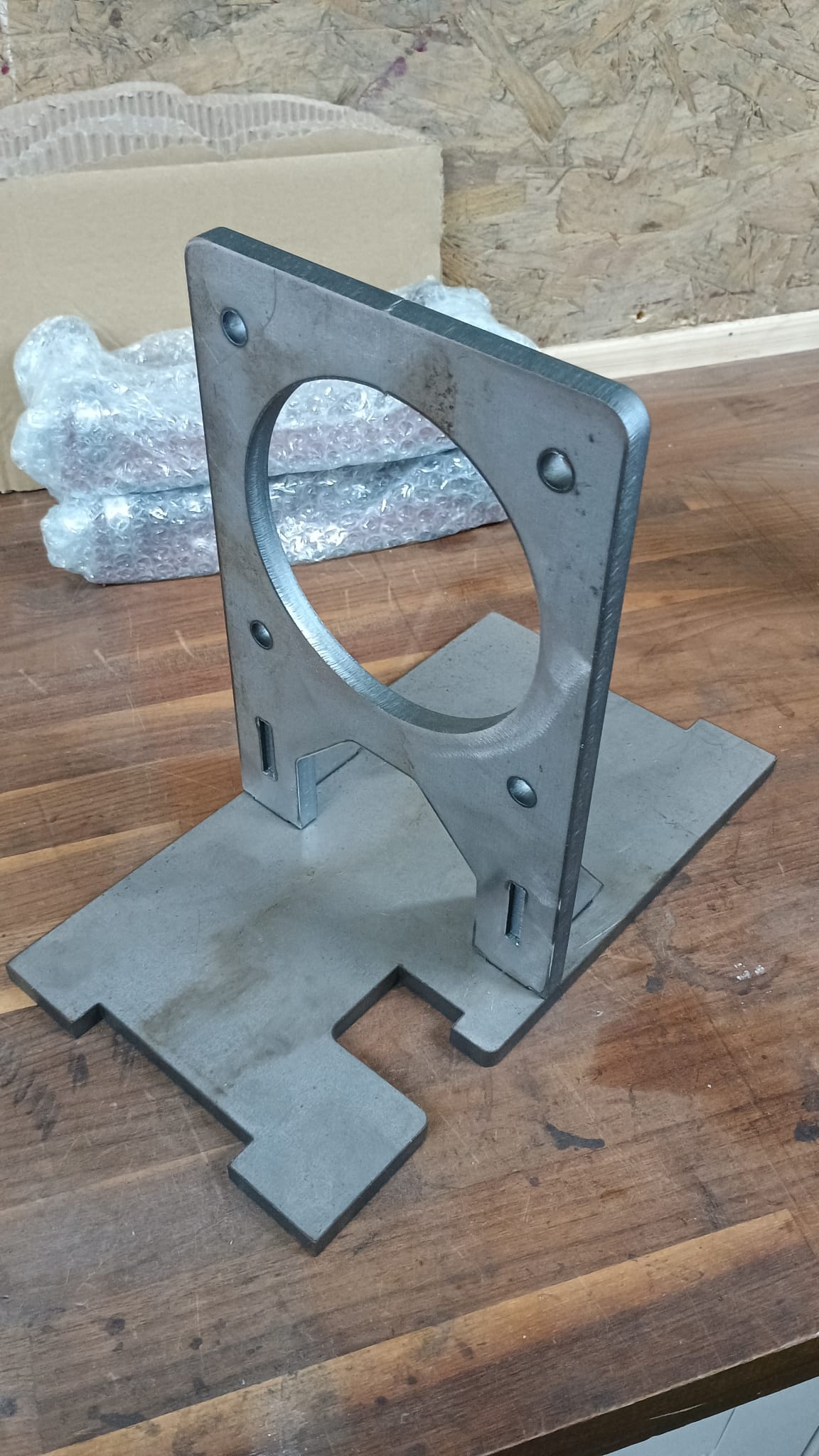 Eaton 6/7 mount plate set. As used in our Knight locomotive, this mount plate set is laser cut from 10mm and 6mm mild steel. The assembled plates allow clearance for a control arm and also feature a slotted bracket for a chain tensioner. Supplied as a weld yourself kit.