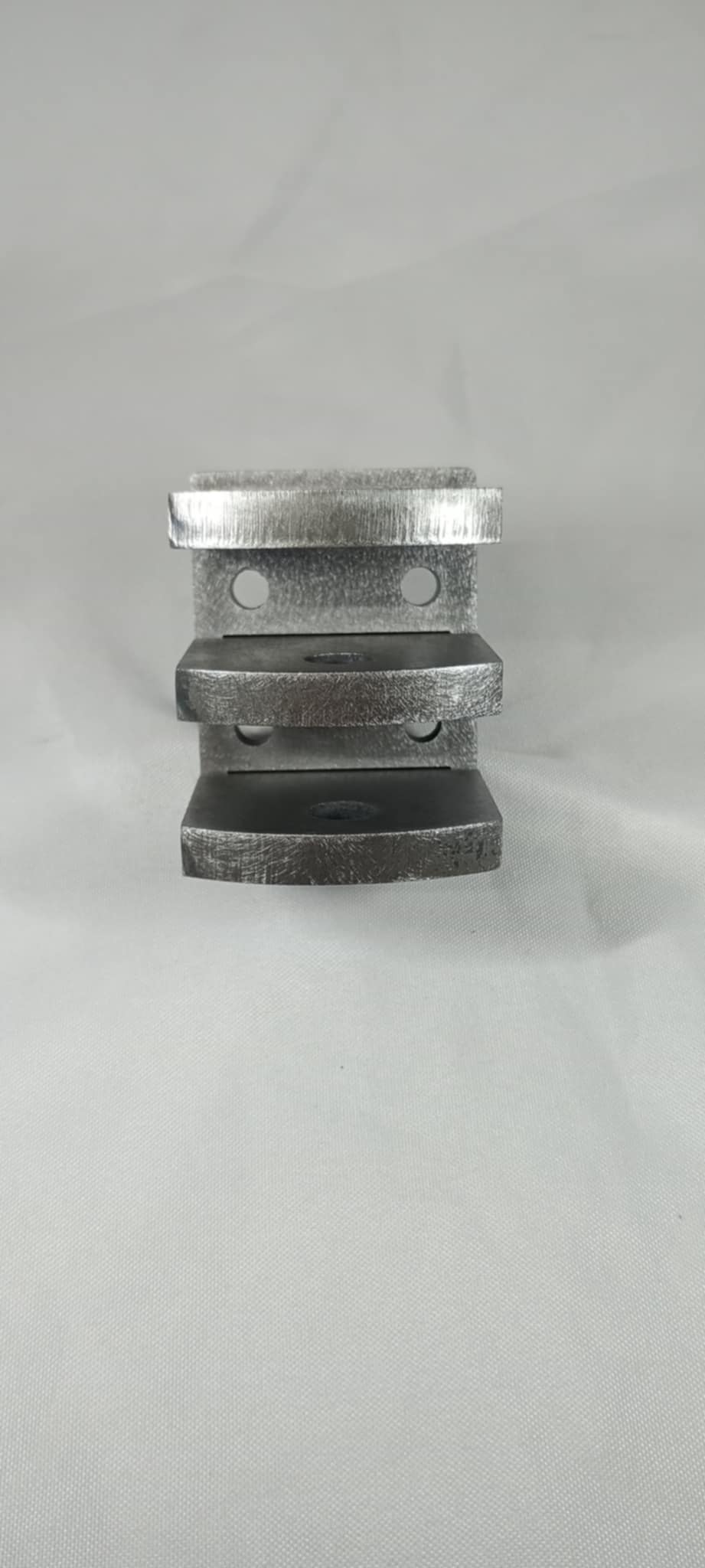 A heavy-duty narrow-gauge style coupling, laser cut from 10mm steel, and mounting holes are placed within the middle of the block.