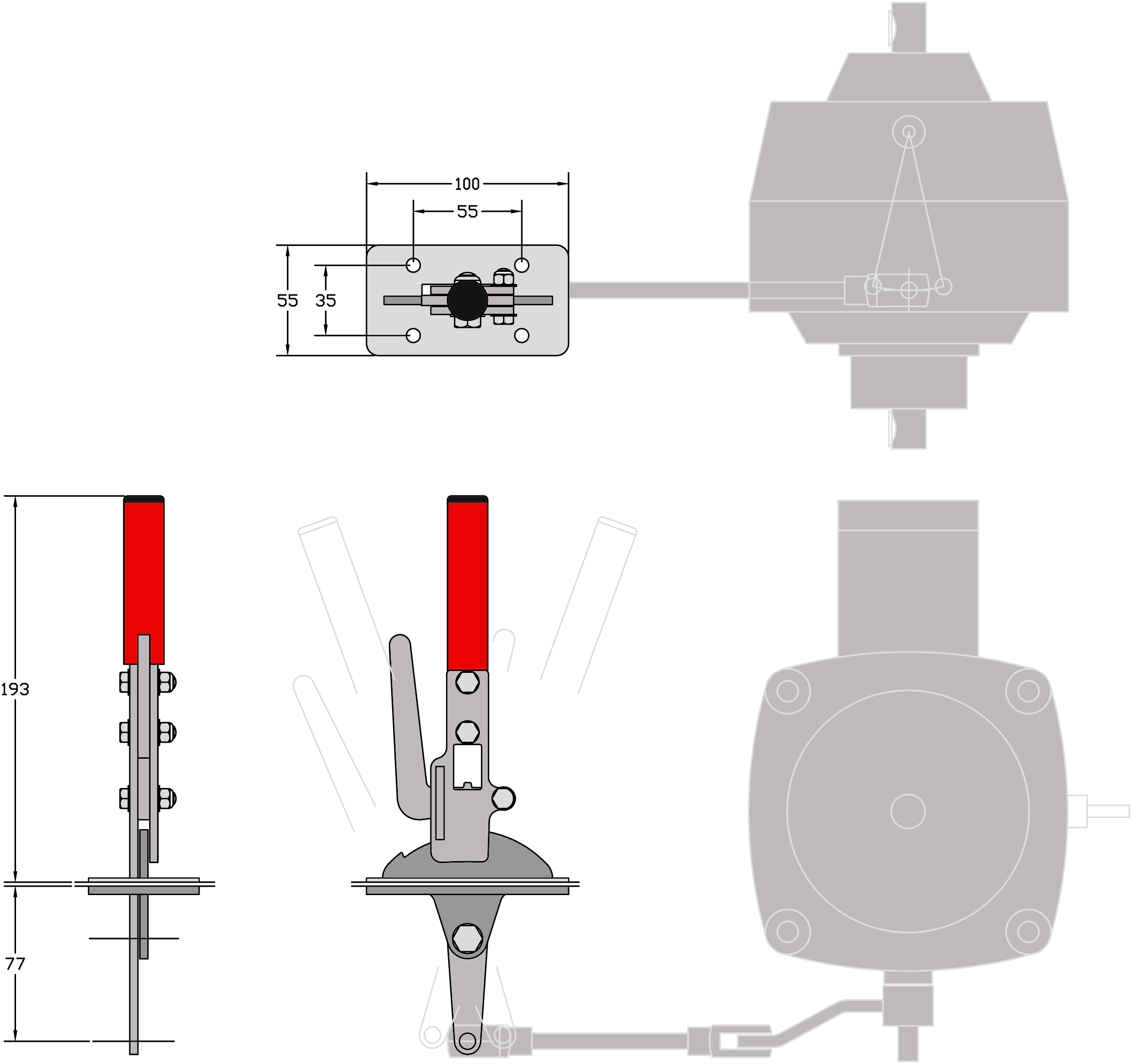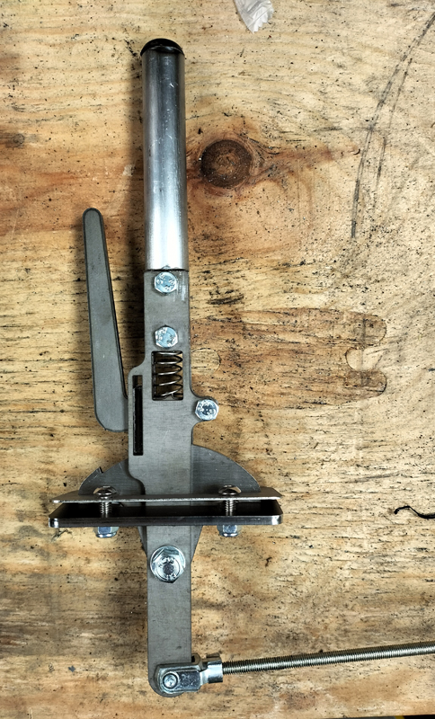 Panel mounted hydrostat control lever. Designed by Colin Edmondson. This hydrostat control lever is panel mounted and designed to be used with the Eaton 7 hydrostat. It should be used in conjunction with the standard CMD hydrostat control arm (supplied separately) to give the correct travel. It has a centre locking ‘neutral’ position for safe operation; the latch has to be pulled to allow the lever to engage forward or reverse travel.