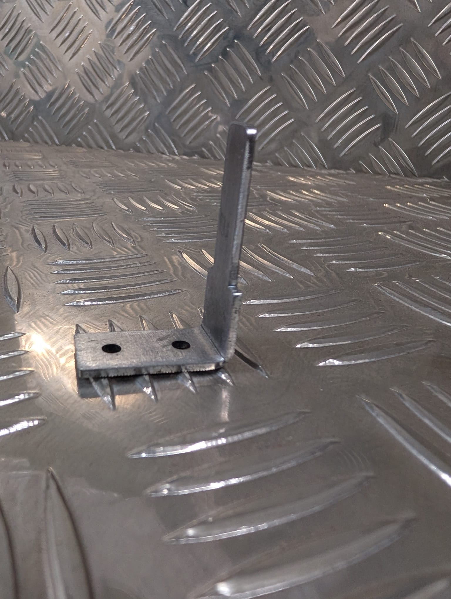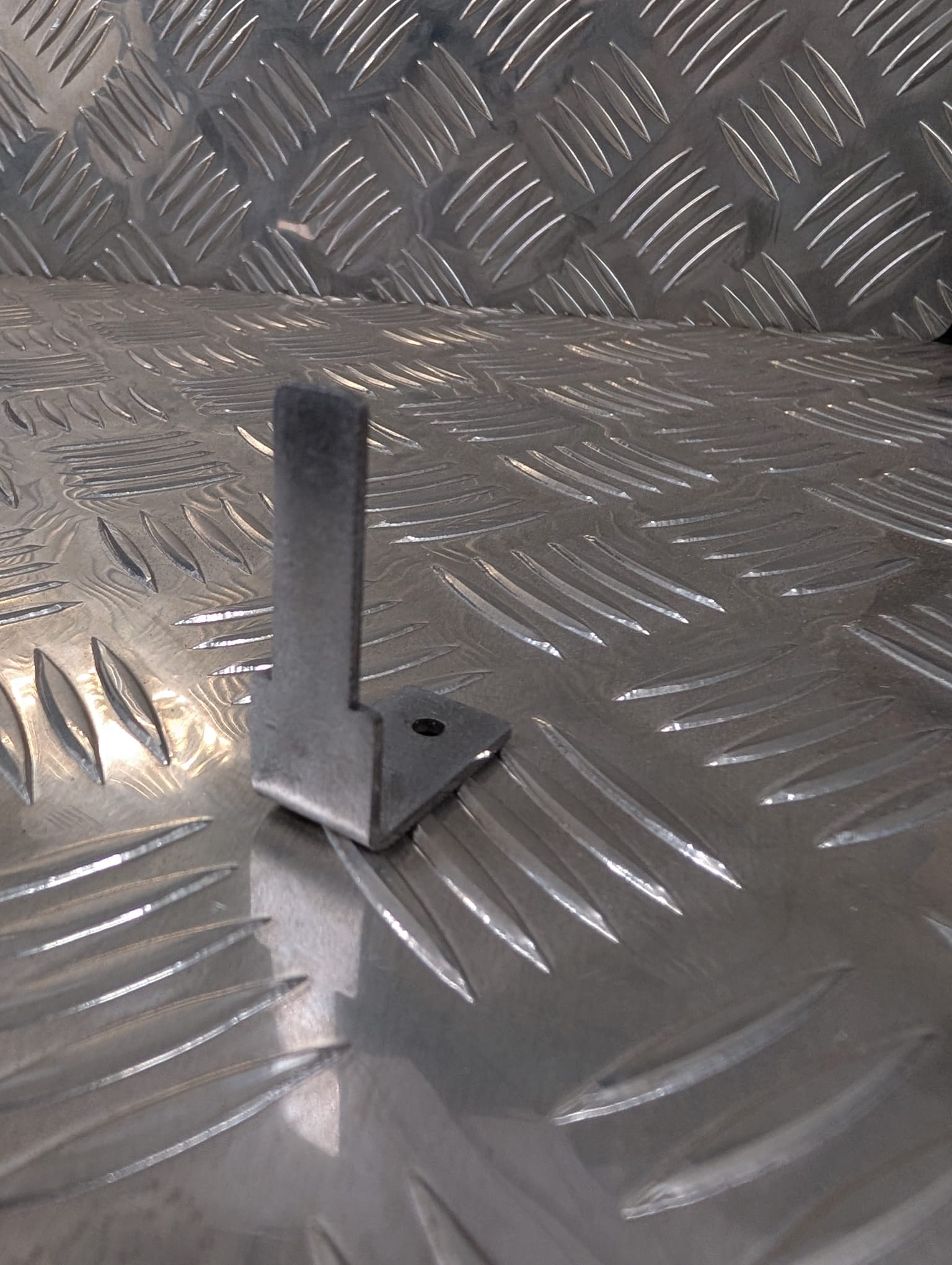 Small 90 degree lamp bracket. Suitable for horizontal surface mounting. Used for small locomotives or rolling stock.