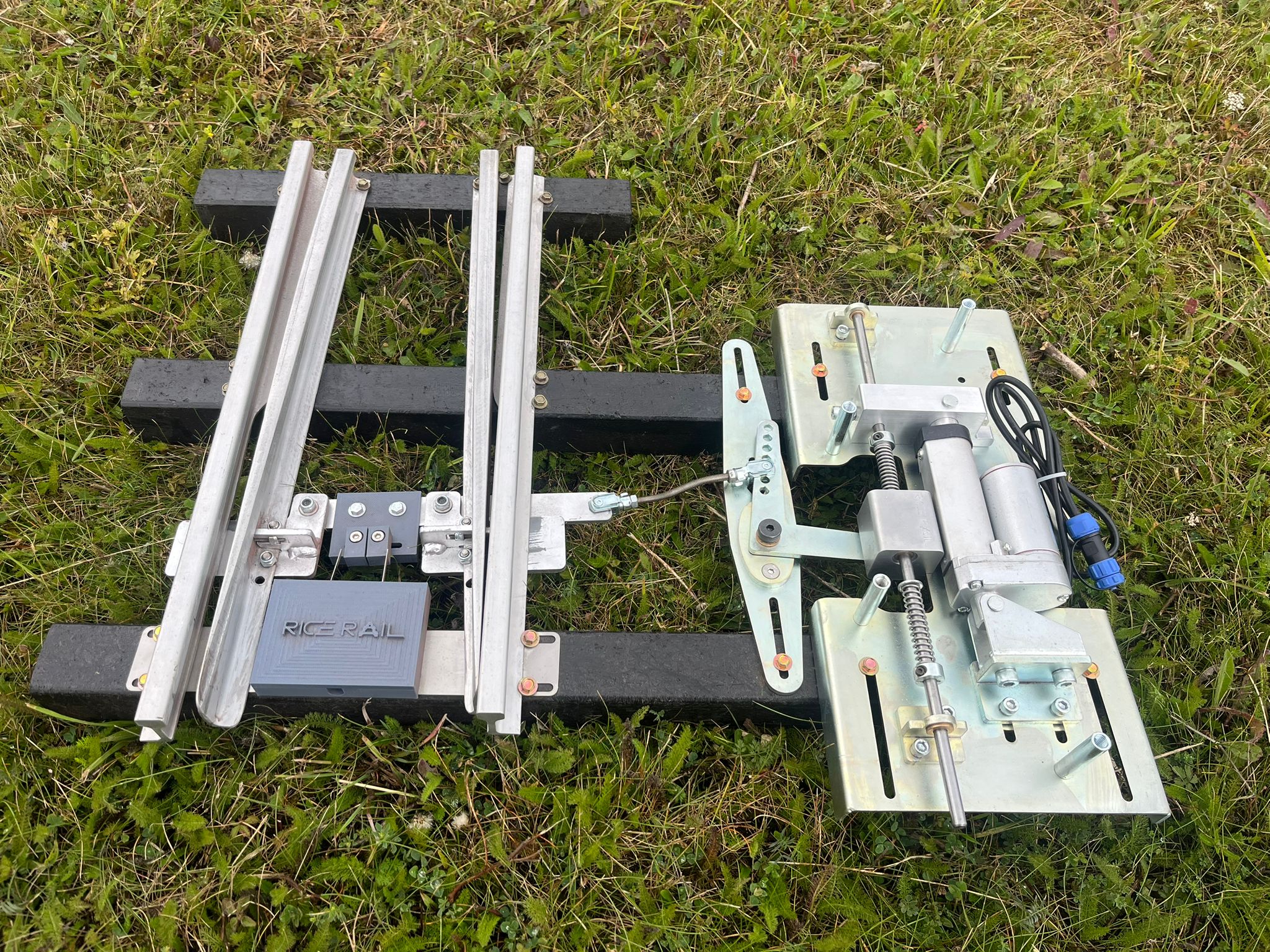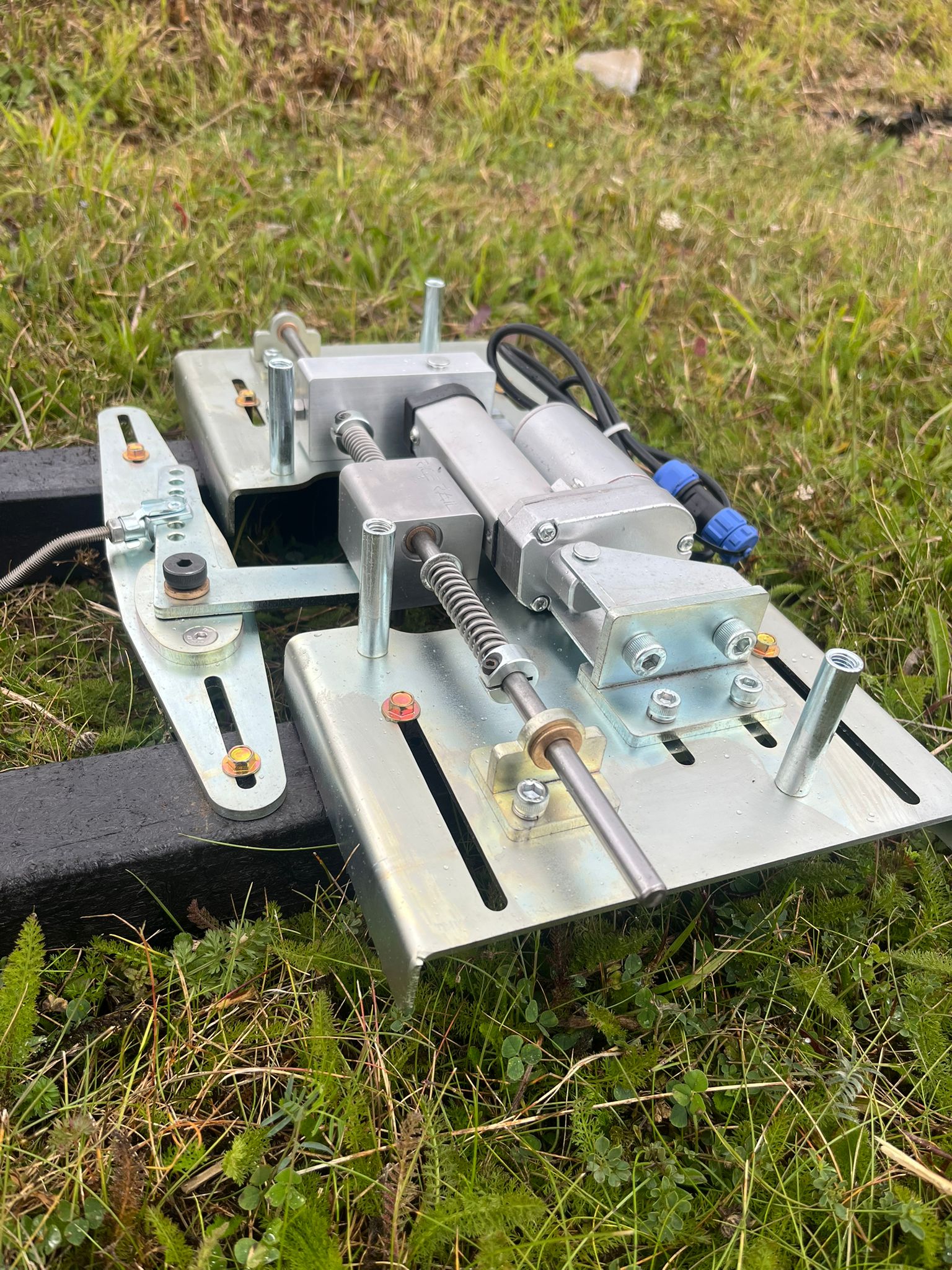12v 50mm travel linear actuator | IP65 rated | 5 Amp max | Output travel on linkage adjustable up to 50mm | Spring loaded mechanism trailing ability and motor protection | Oilite bearings on main linkages | Heavy duty steel cover | Fits direct to sleepers | Easy installation