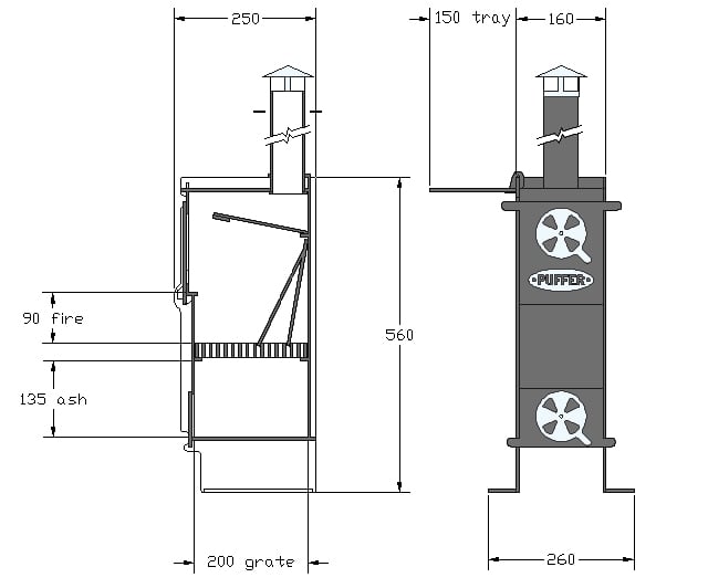 This stove is designed to fit comfortably into a 7¼” guards van. The top will take a single egg frying pan or kettle. This stove features an adjustable grate.