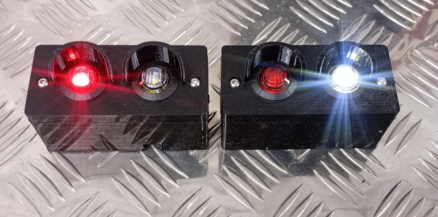 MK4 Scamp Marker Lights Set. These LED marker lights are sold as a pair; and purpose built for the Scamp locomotive. Each unit is switchable between white and red aspect. The units do not require any drilling or wiring. Powerful neodymium magnets securely hold the unit into place.