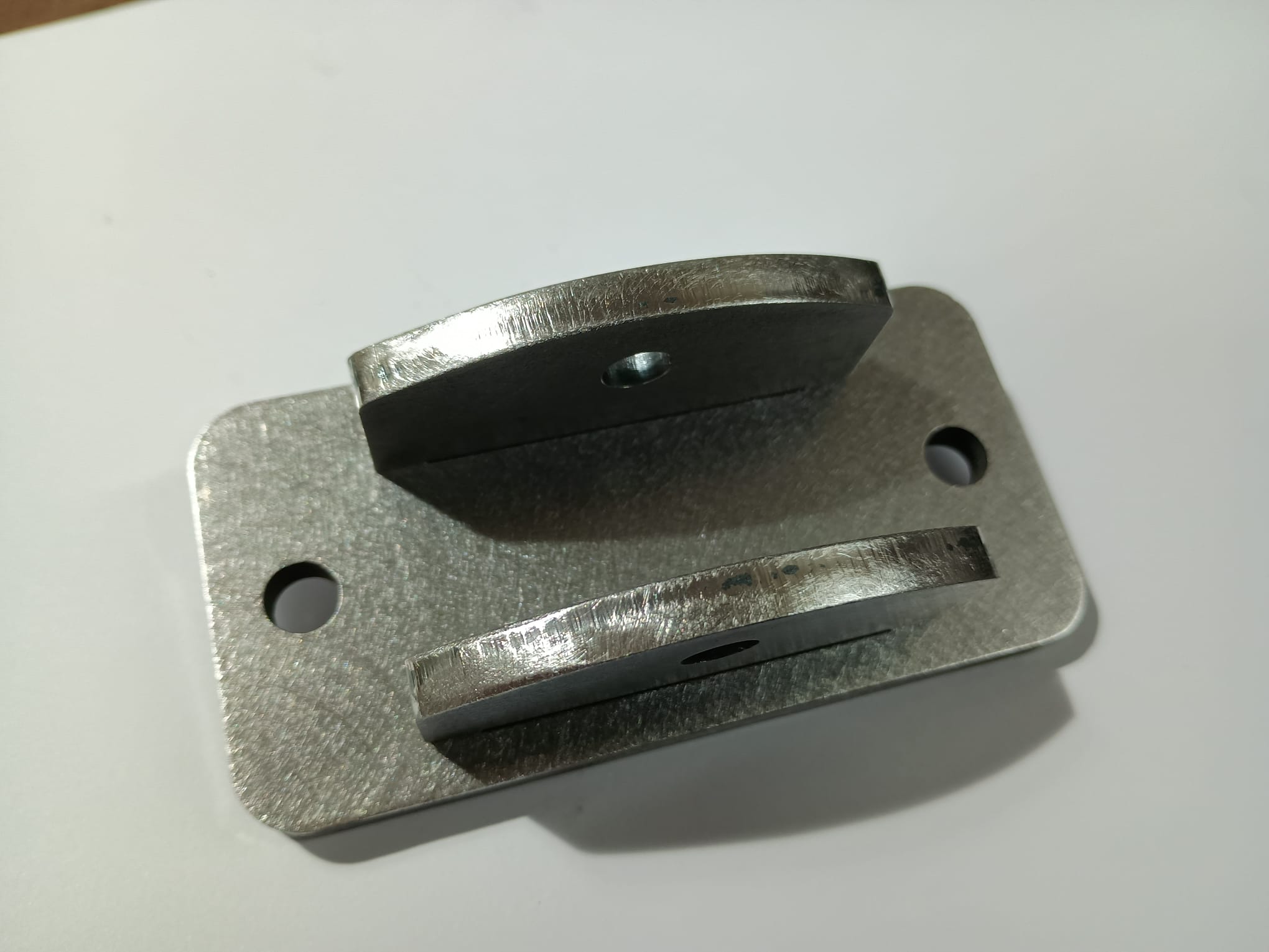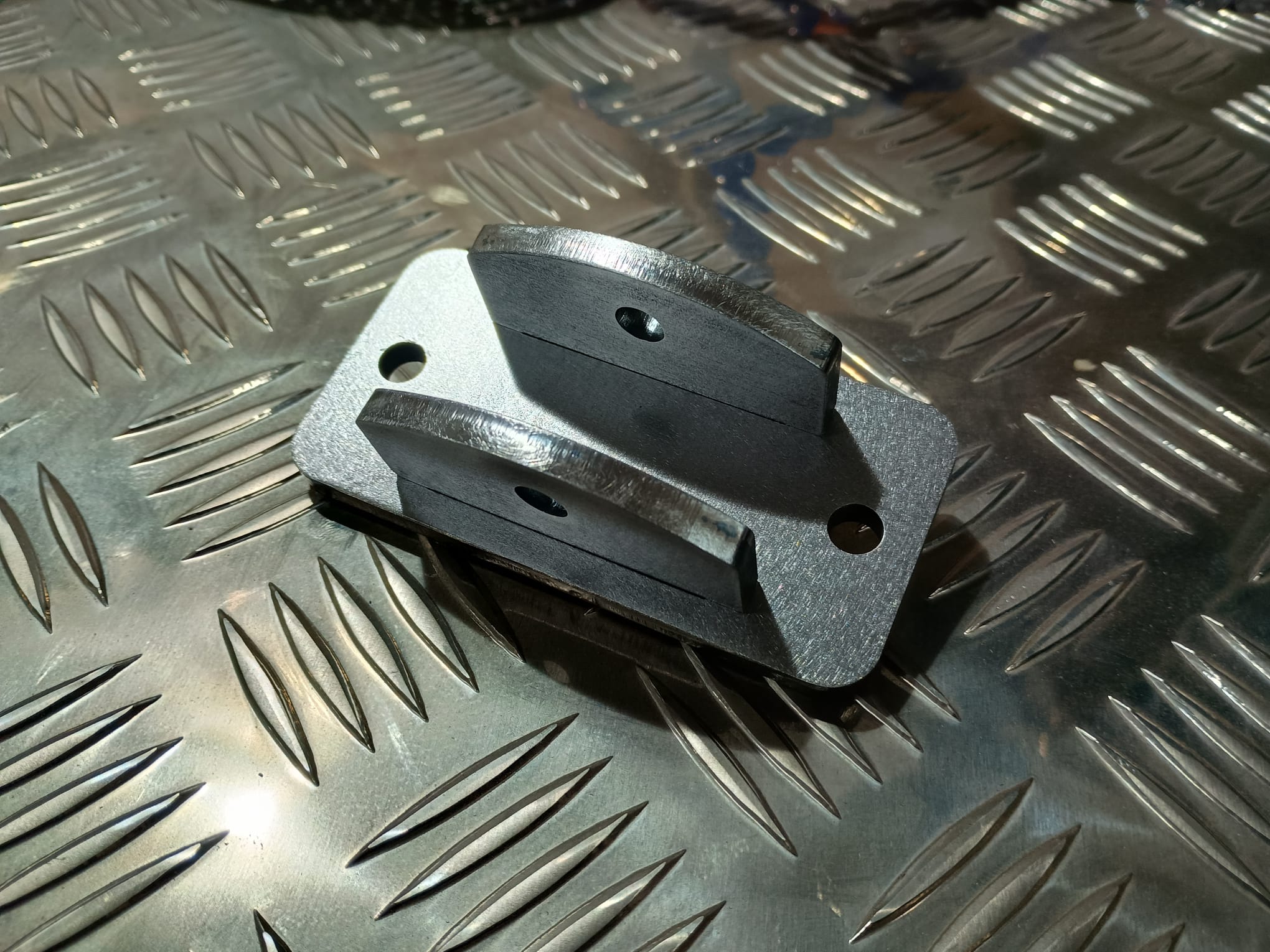 A large back plate narrow gauge style single slot coupling, laser cut from 6mm mild steel and mounting holes are placed on the sides of the block.