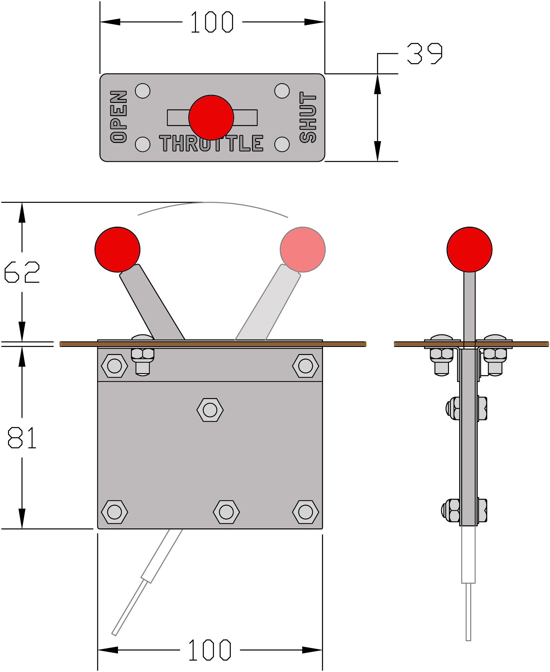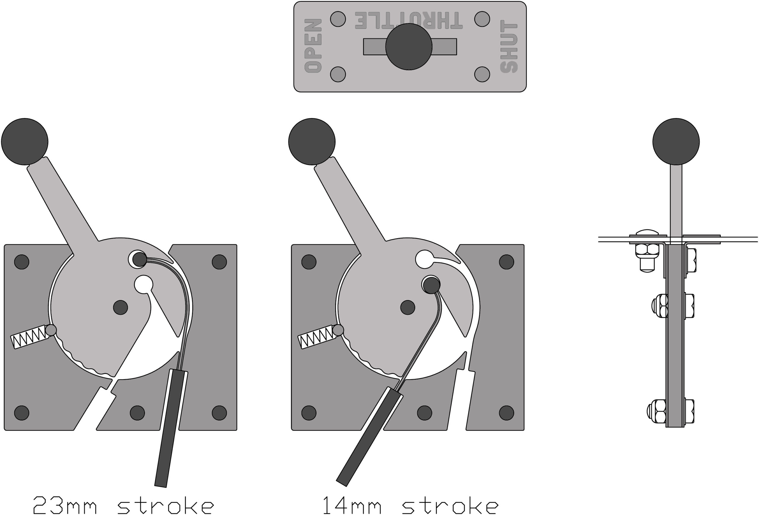 Throttle lever. Designed by Colin Edmondson, used to control the amount of fuel provided to the engine.