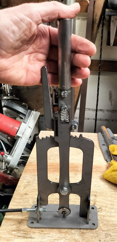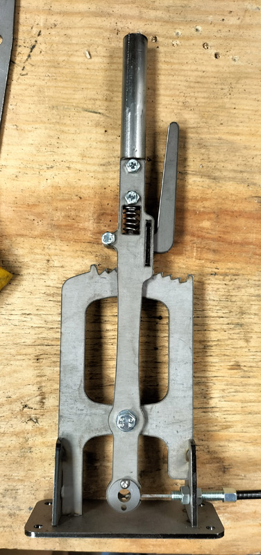 Designed by Colin Edmondson, this vertical handbrake bolts to the floor and operates the brakes via a heavy duty bowden cable (not included). The design is well proven and well used and is the same as used on the Scamp locomotive.